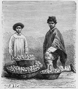 Ahora bien, como marco fundamental para comprender las representaciones de tipos populares en América latina hay que mencionar los viajes de exploración efectuados hacia el continente durante casi todo el siglo XIX, y sus respectivos productos editoriales. En estos últimos quedaban descritos, inventariados y clasificados los territorios visitados por los viajeros europeos, desde el punto de vista de los saberes científicos (historia natural, ciencias humanas, geografía, arquitectura, etnografía material, etc.), pero también desde una mirada estética y pintoresquista. El objetivo de estas publicaciones era proporcionar información verosímil y acreditable sobre los parajes visitados y a la vez “evocar aquello que entretiene la vista” y “estimula los sentidos del espectador”[102]. Como parte constitutiva de este “inventario” etnográfico pintoresco sobre América[103], se encontraban, por supuesto, los diferentes tipos populares.